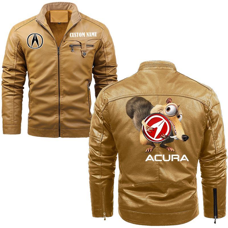 Scrat Squirrel In Ice Age Acura Zip Pocket Fleece Leather Jacket