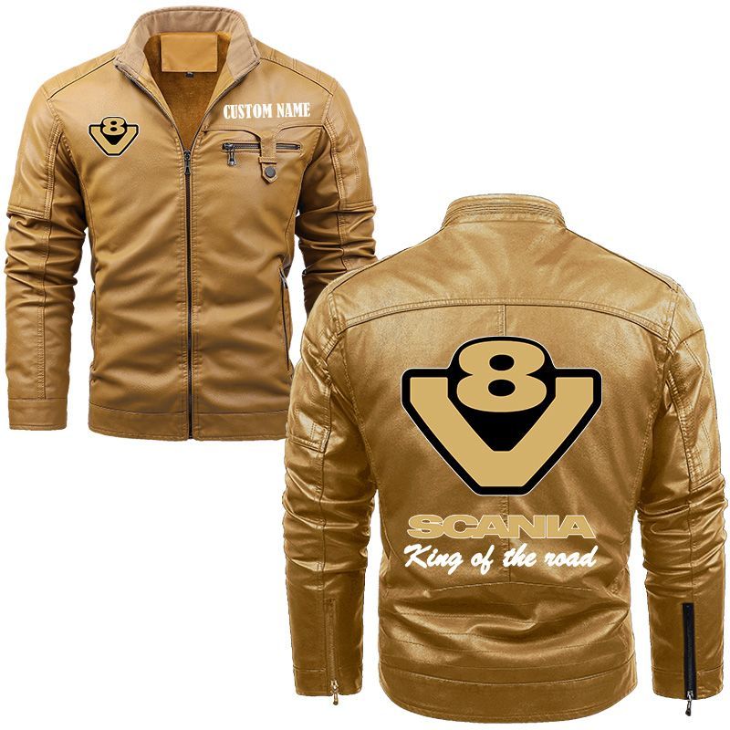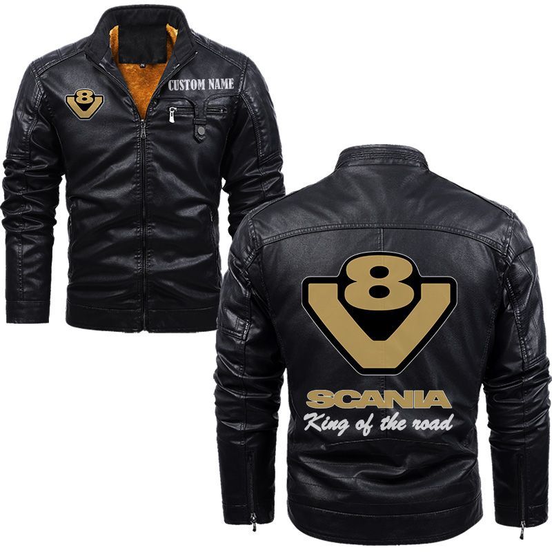 Scania V8 Zip Pocket Fleece Leather Jacket