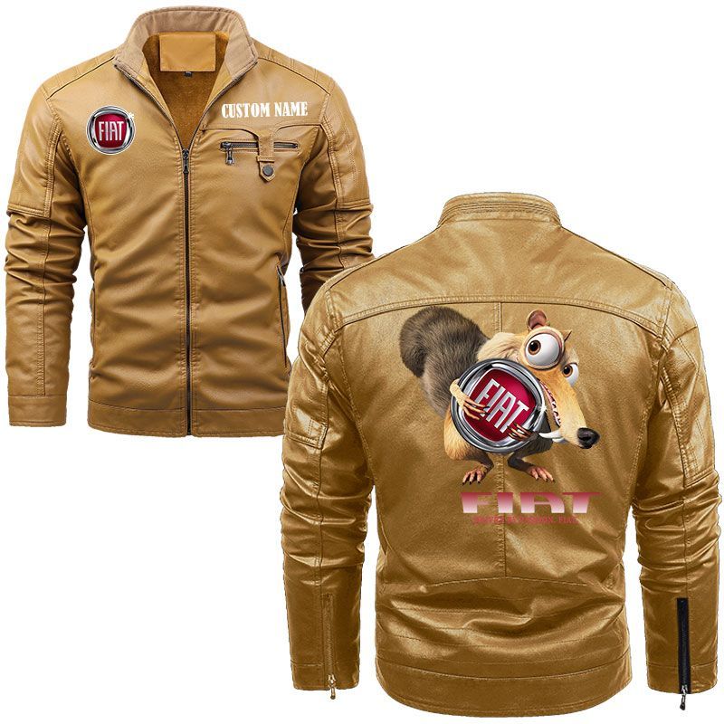 Scrat Squirrel In Ice Age Fiat Zip Pocket Fleece Leather Jacket