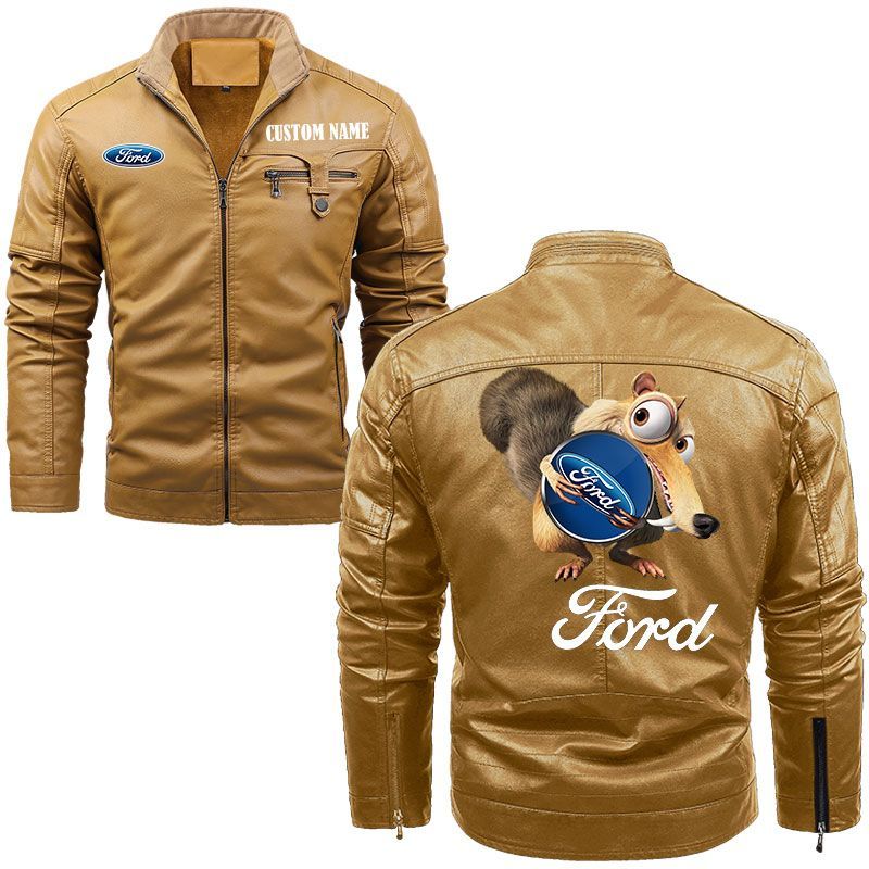 Scrat Squirrel In Ice Age Ford Motor Company Zip Pocket Fleece Leather Jacket