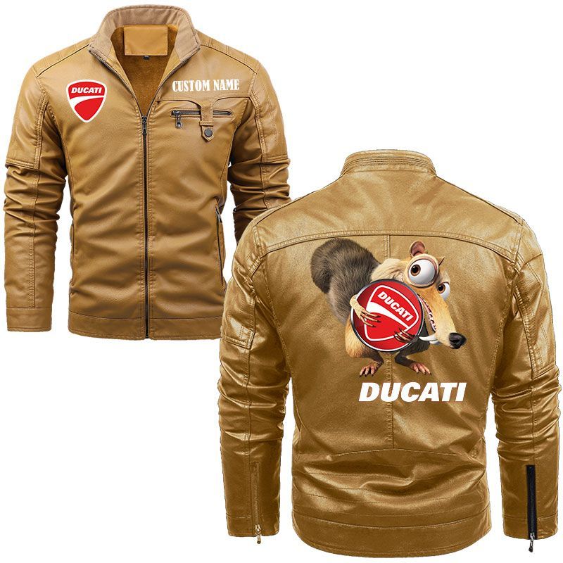 Scrat Squirrel In Ice Age Ducati Corse Zip Pocket Fleece Leather Jacket