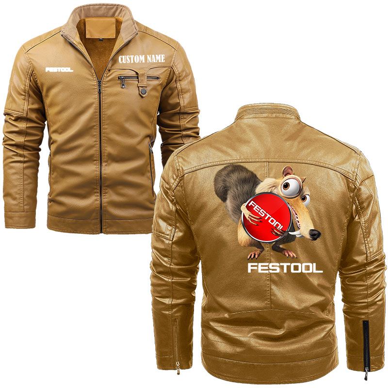 Scrat Squirrel In Ice Age Festool Zip Pocket Fleece Leather Jacket