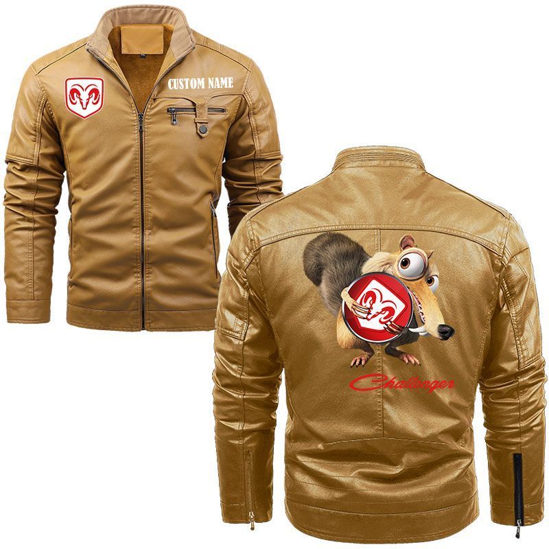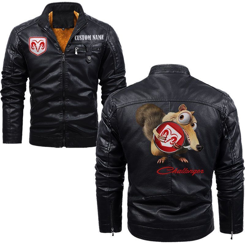 Scrat Squirrel In Ice Age Dodge Challenger Zip Pocket Fleece Leather Jacket