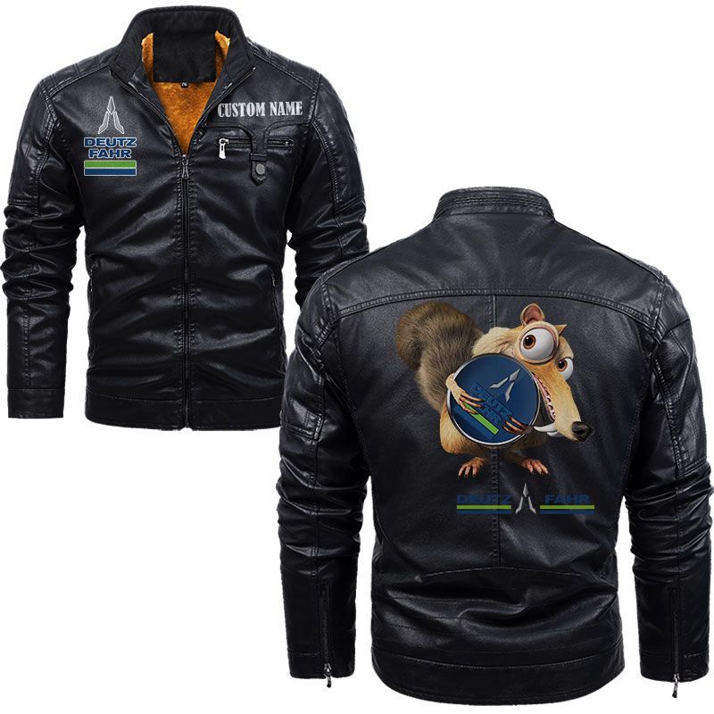 Scrat Squirrel In Ice Age Deutz Fahr Zip Pocket Fleece Leather Jacket
