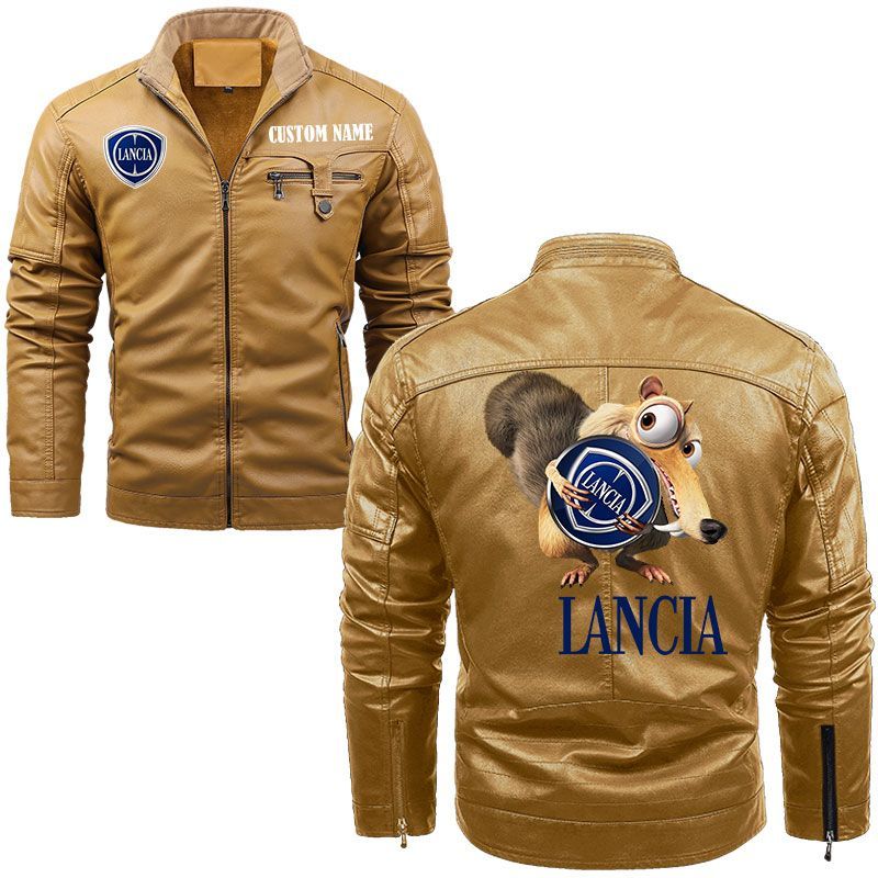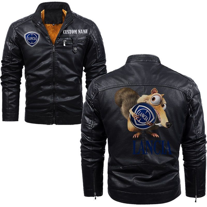 Scrat Squirrel In Ice Age Lancia Zip Pocket Fleece Leather Jacket