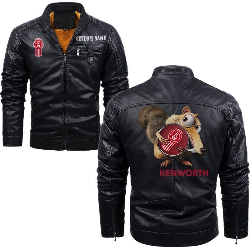Scrat Squirrel In Ice Age Kenworth Zip Pocket Fleece Leather Jacket