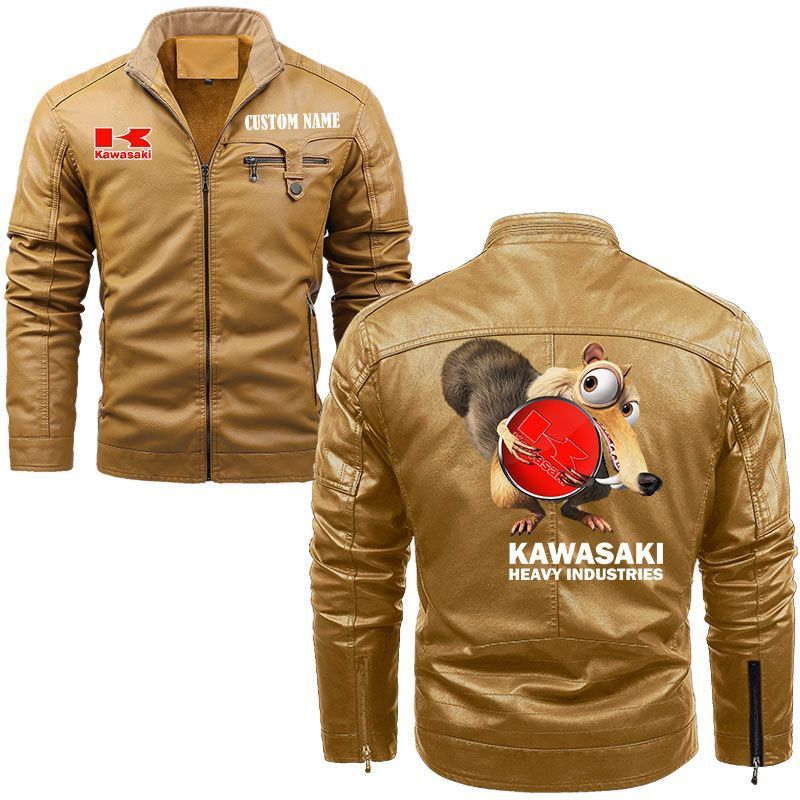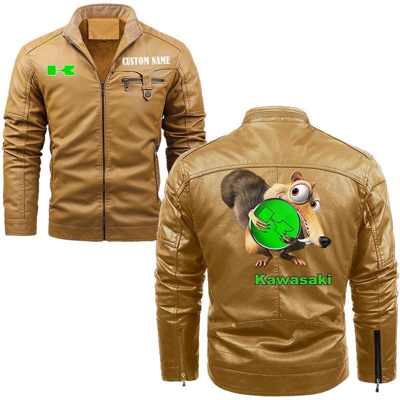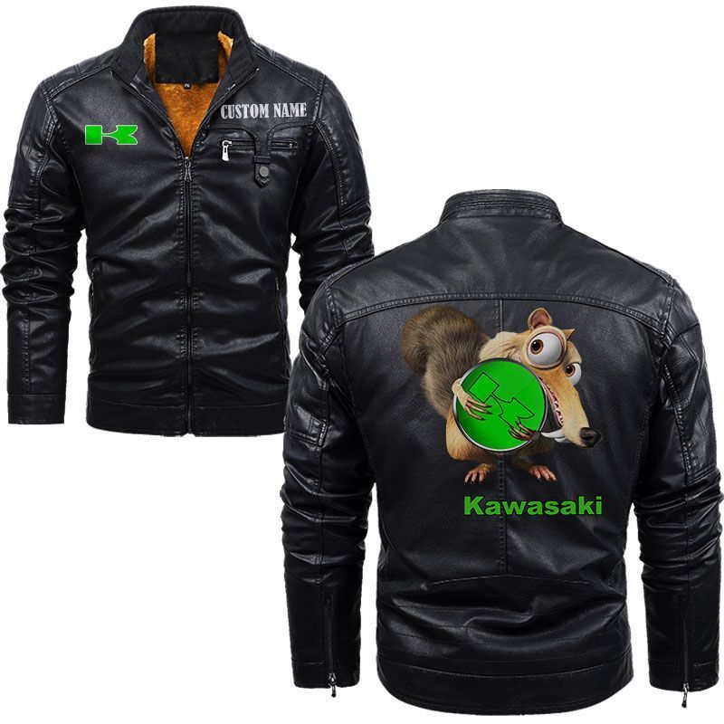 Scrat Squirrel In Ice Age Kawasaki Zip Pocket Fleece Leather Jacket