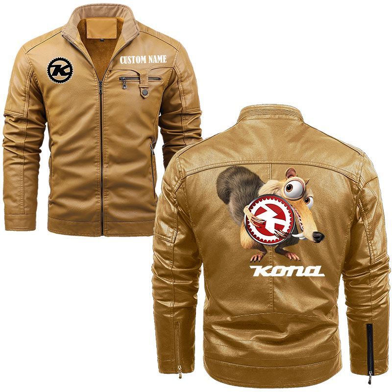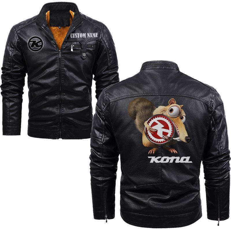 Scrat Squirrel In Ice Age Kona Bicycle Company Zip Pocket Fleece Leather Jacket