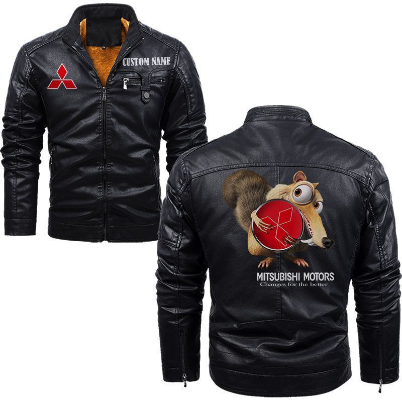 Scrat Squirrel In Ice Age Mitsubishi Zip Pocket Fleece Leather Jacket