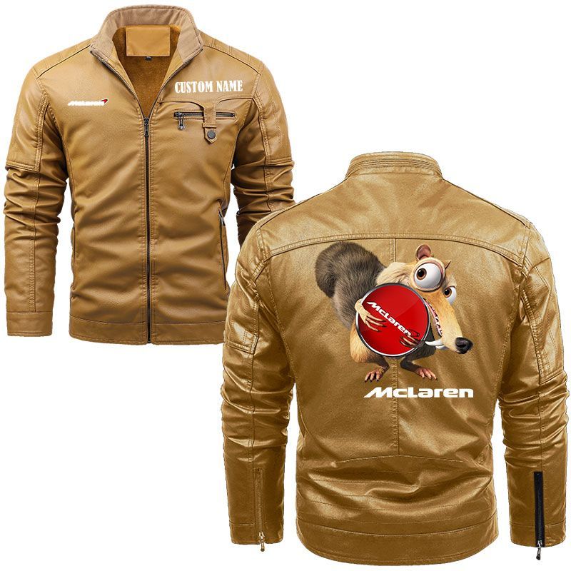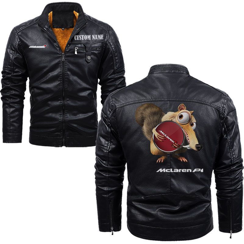 Scrat Squirrel In Ice Age McLaren Automotive Zip Pocket Fleece Leather Jacket