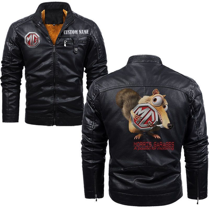 Scrat Squirrel In Ice Age MG Cars Zip Pocket Fleece Leather Jacket