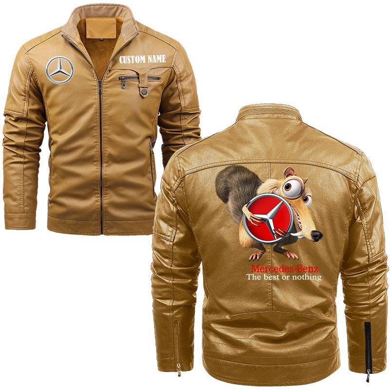 Scrat Squirrel In Ice Age Mercedes Benz Zip Pocket Fleece Leather Jacket