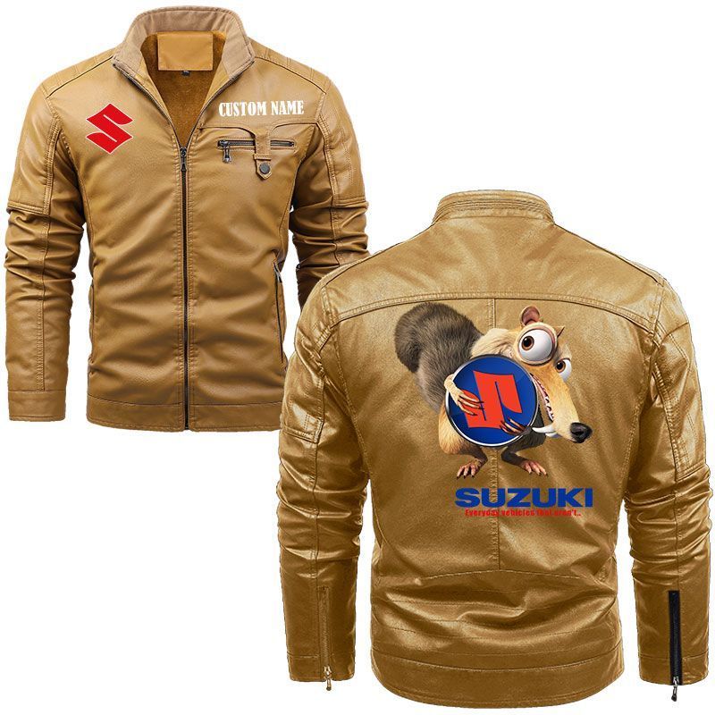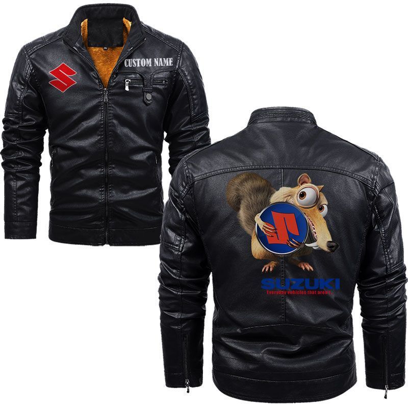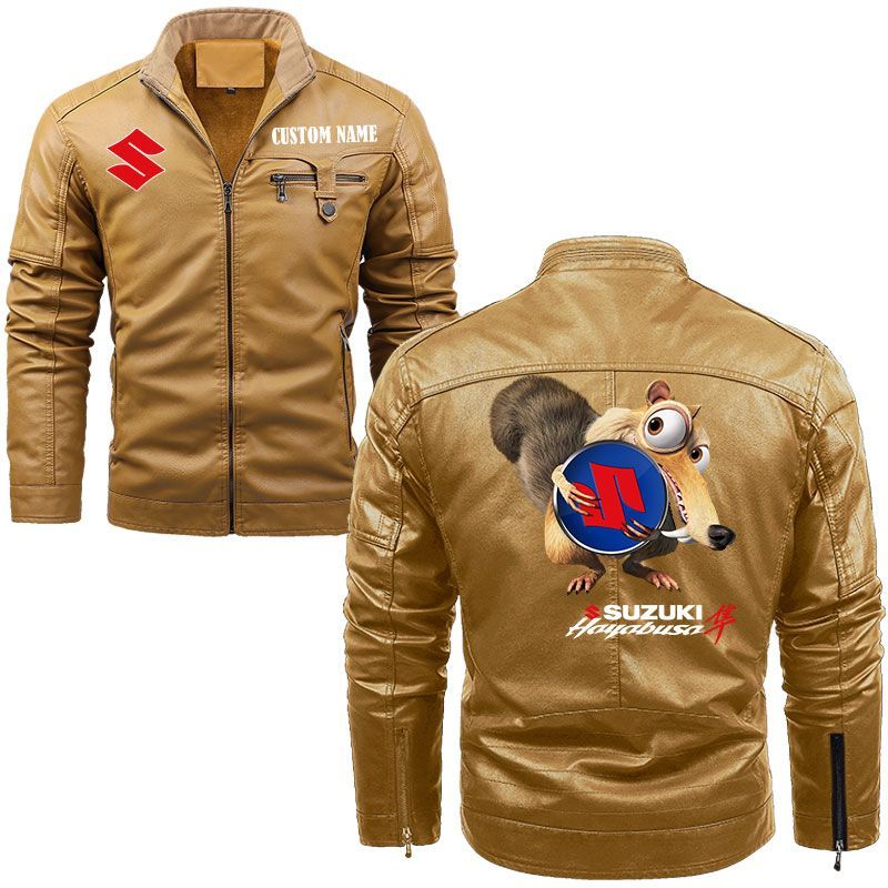 Scrat Squirrel In Ice Age Suzuki Hayabusa Zip Pocket Fleece Leather Jacket