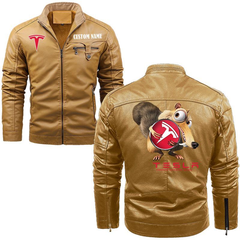 Scrat Squirrel In Ice Age Tesla Motors Zip Pocket Fleece Leather Jacket