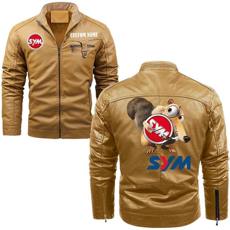 Scrat Squirrel In Ice Age SYM Motors Zip Pocket Fleece Leather Jacket