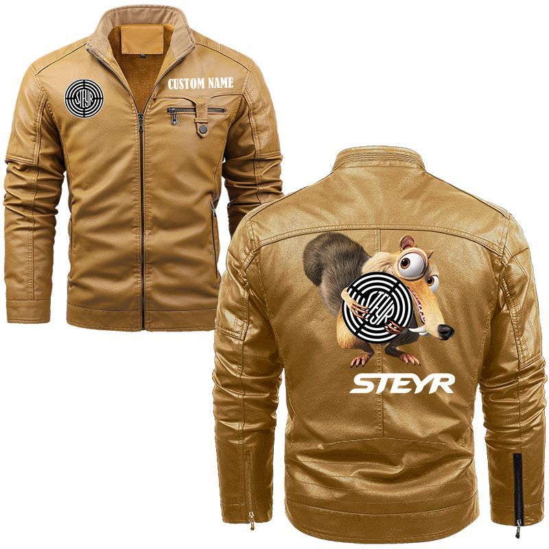 Scrat Squirrel In Ice Age Steyr Tractor Zip Pocket Fleece Leather Jacket