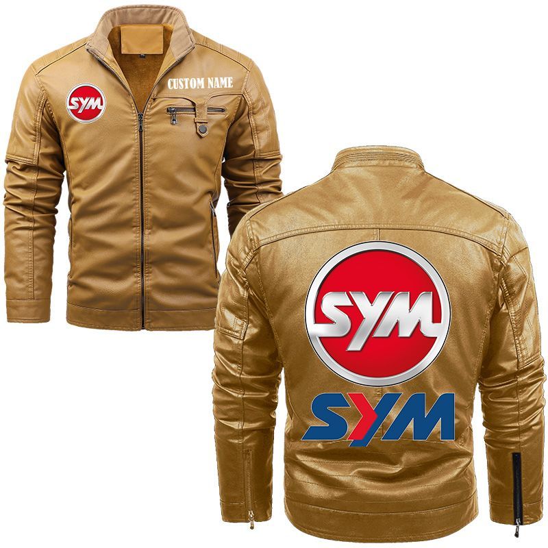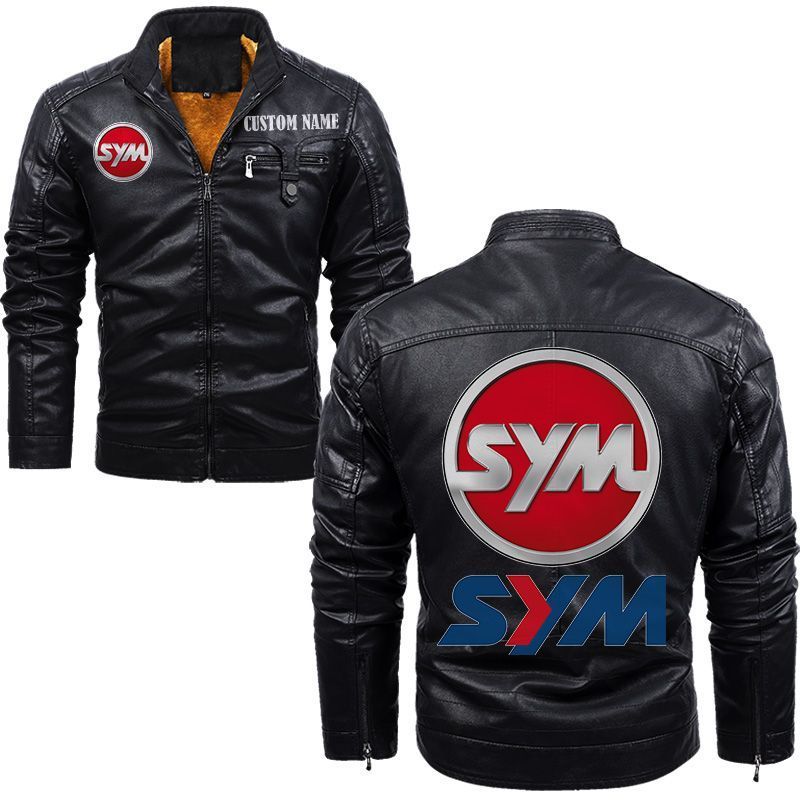 SYM Motors Zip Pocket Fleece Leather Jacket