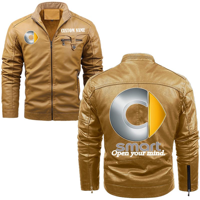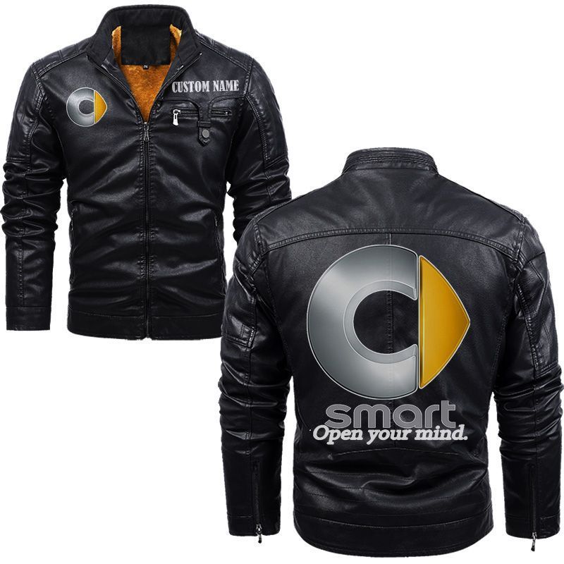 Smart Zip Pocket Fleece Leather Jacket