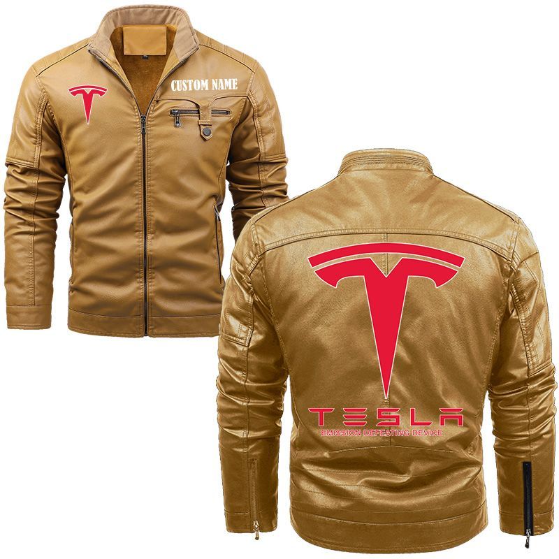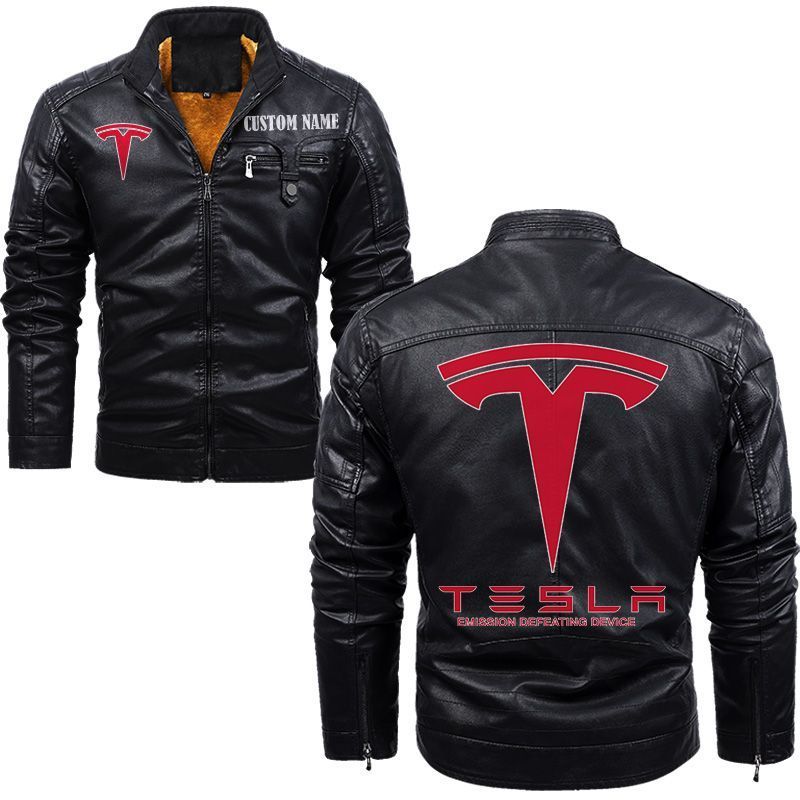 Tesla Motors Zip Pocket Fleece Leather Jacket