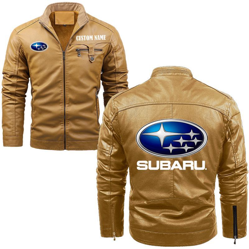 Subaru Zip Pocket Fleece Leather Jacket