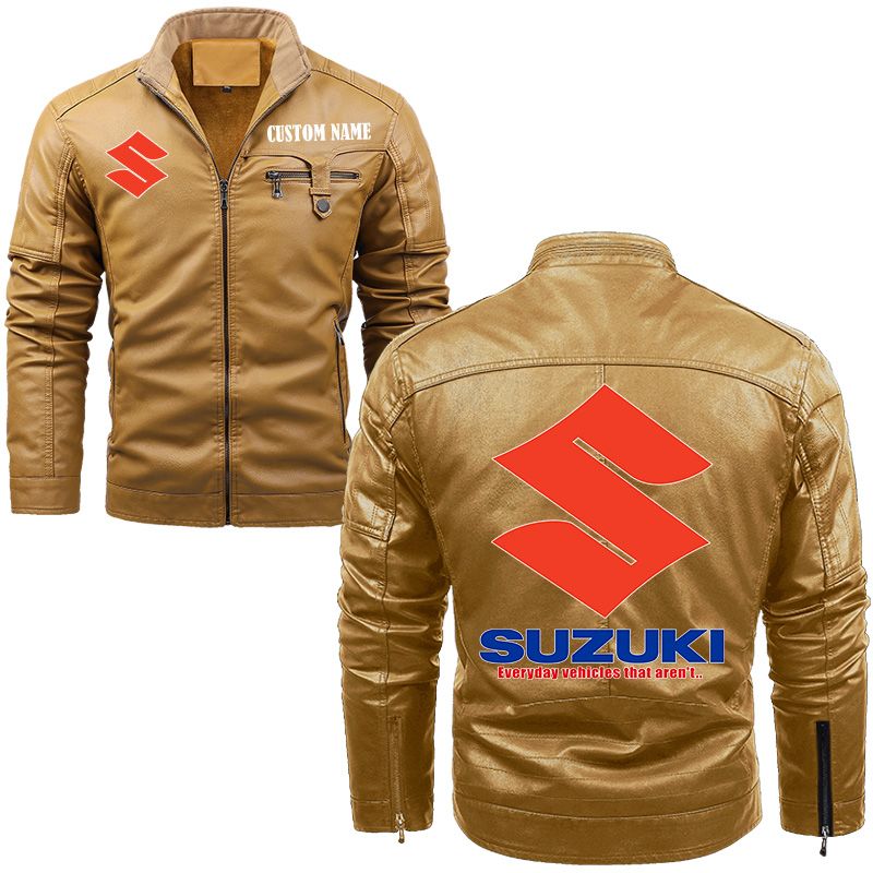 Suzuki Hayabusa Zip Pocket Fleece Leather Jacket