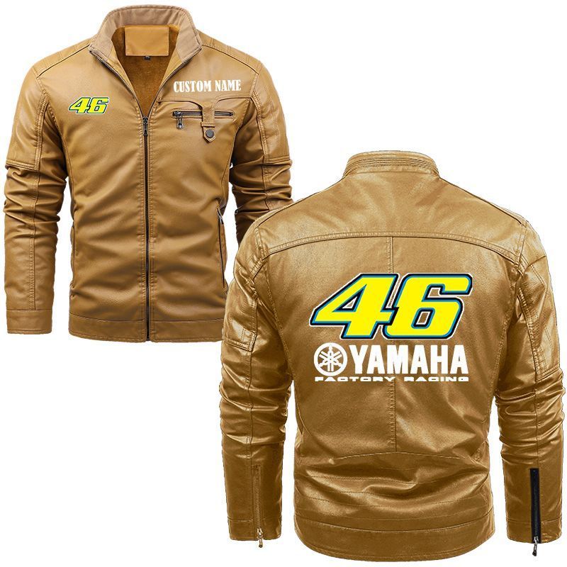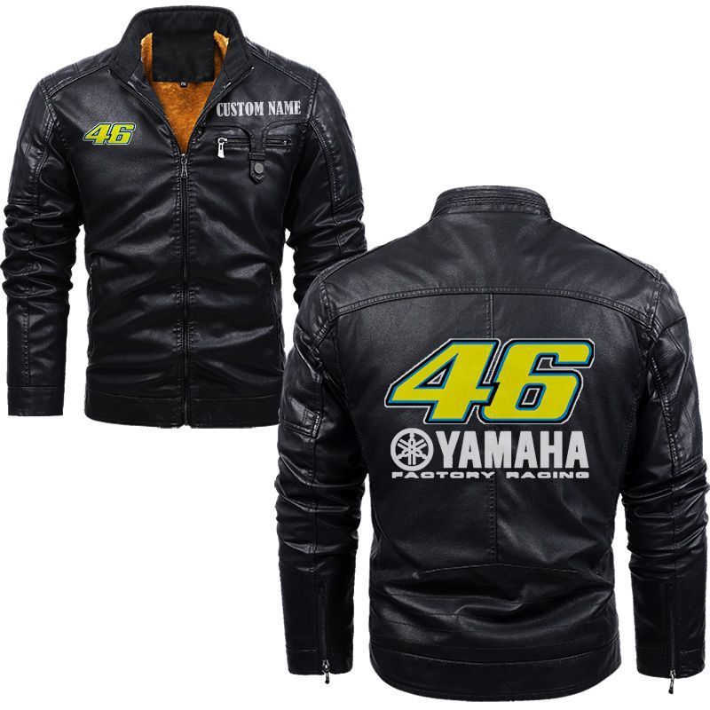 Valentino Rossi 46 Zip Pocket Fleece Leather Jacket