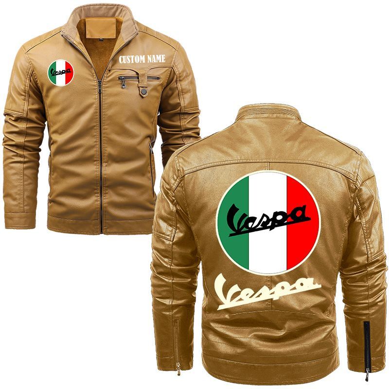 Zip Pocket Fleece Leather Jacket Custom (792)