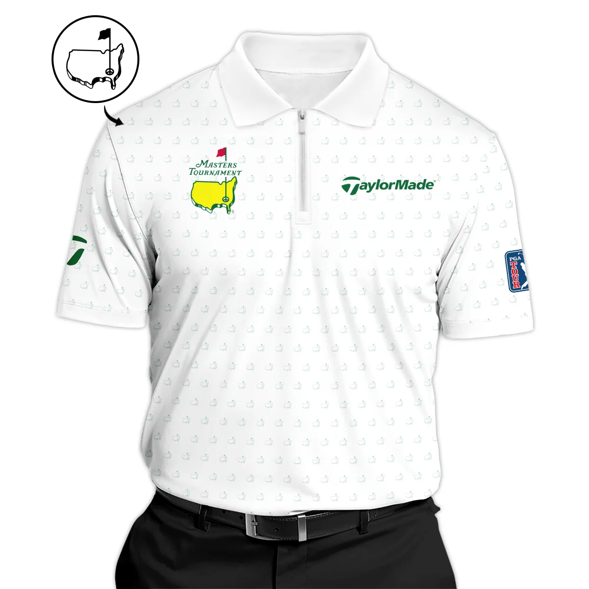 Golf Sport Masters Tournament Taylor Made Zipper Polo Shirt Sports Augusta Icons Pattern White Green Zipper Polo Shirt