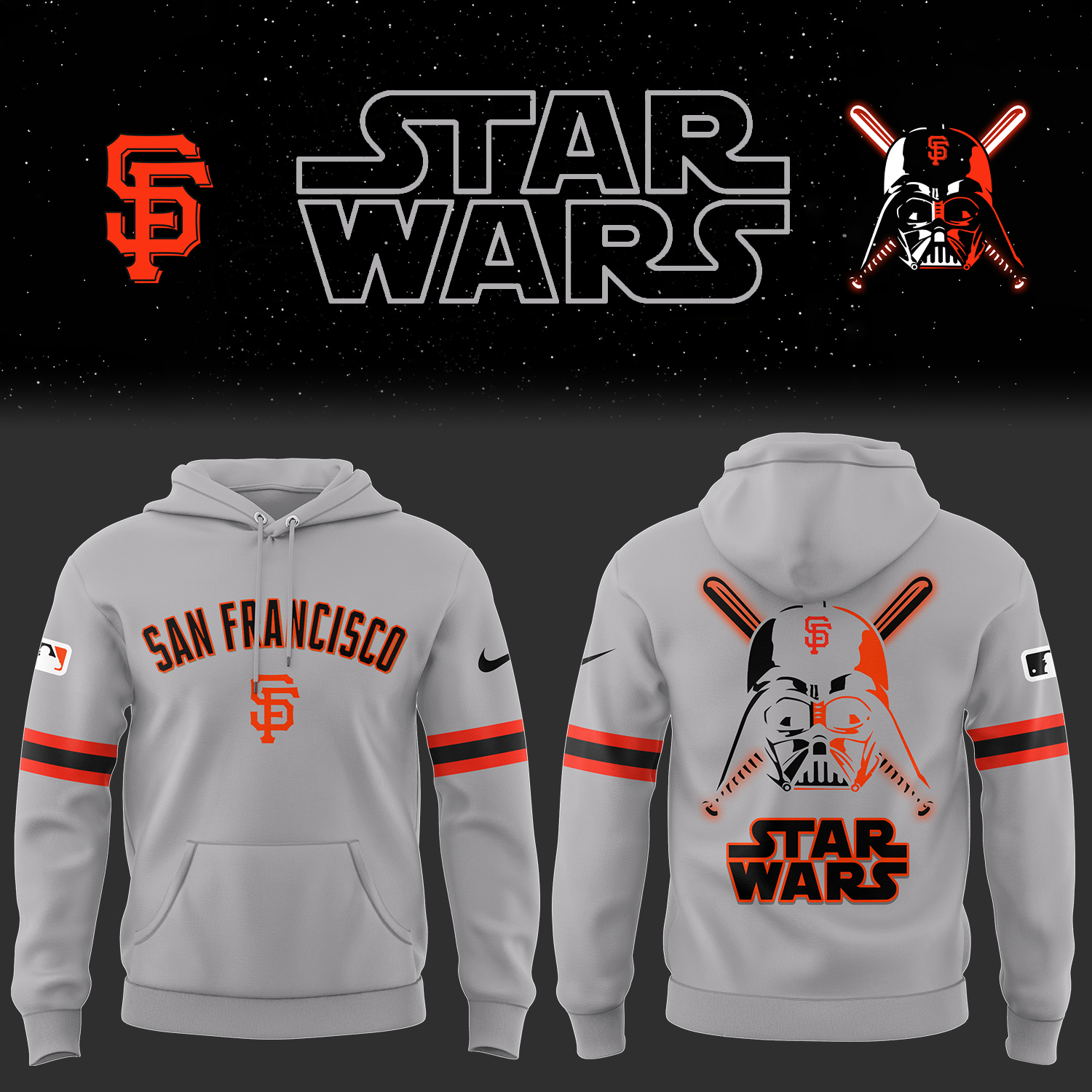 Giants Baseball 2025 Giants X Stars Wars Grey Hoodie Gift Ideas For Baseball Players
