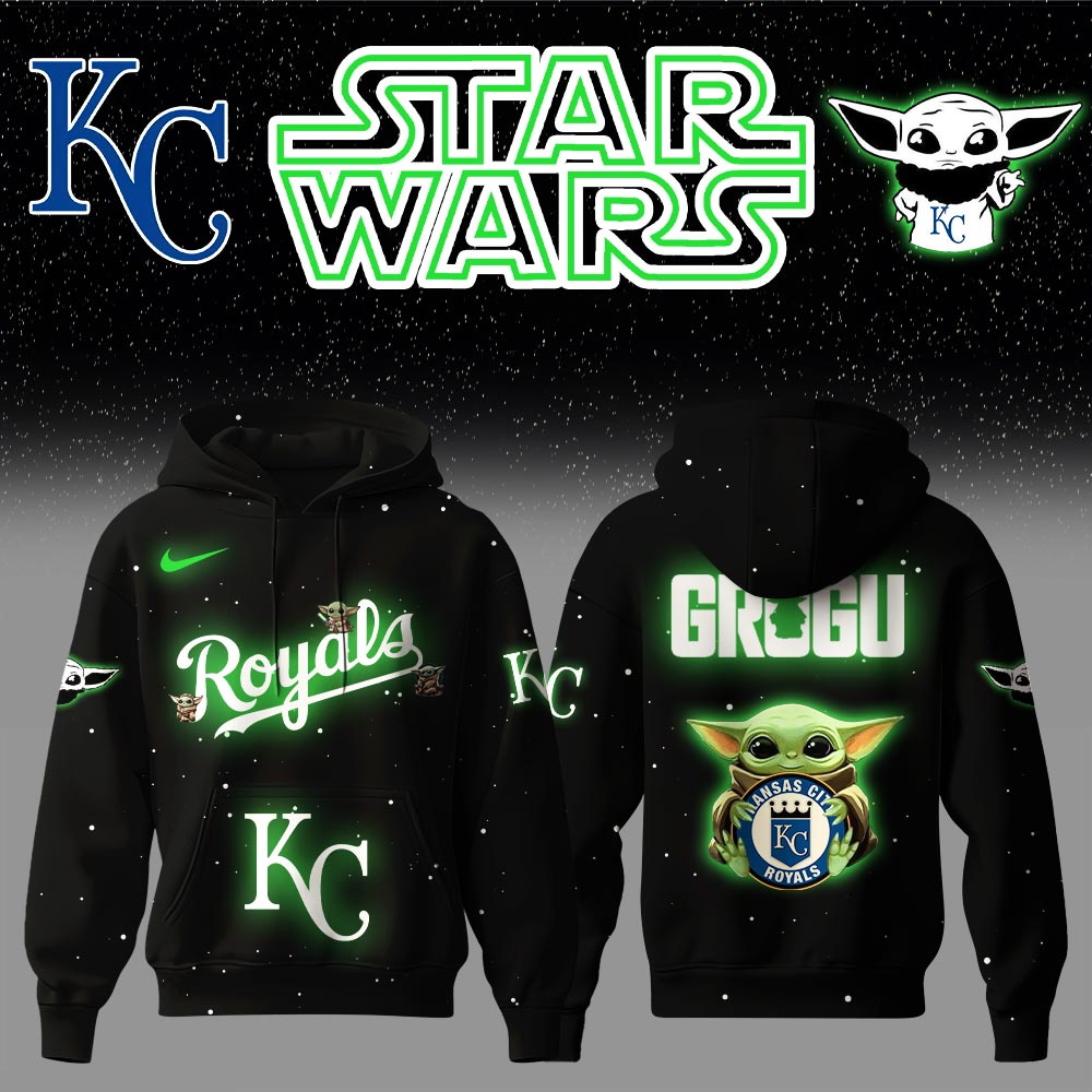 Kansas City Royals x Stars Wars Baby Yoda Game Night Hoodie Gifts For Baseball Players