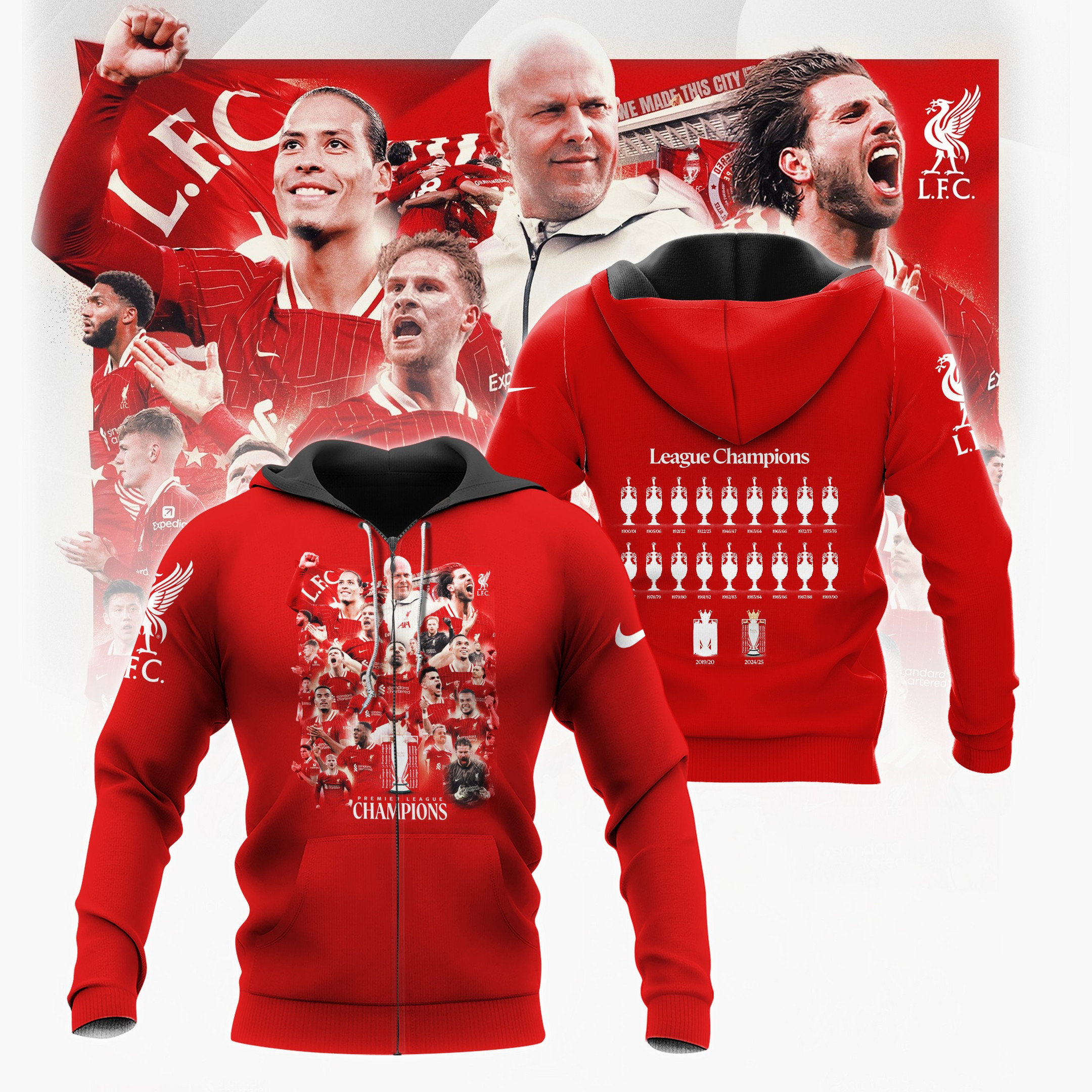 Liverpool FC 2025 League Champions Zip Hoodie Best Gifts For Football Lovers