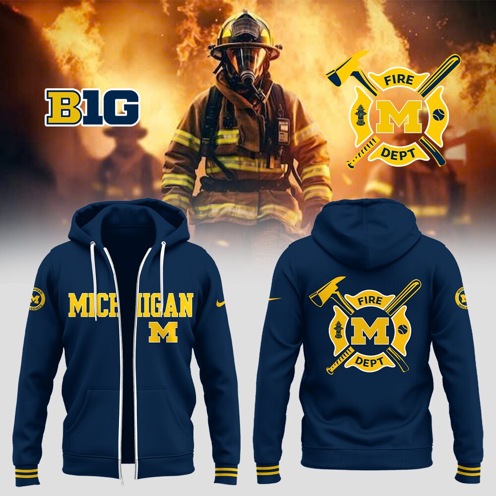 Michigan Baseball x Firefighter Appreciation Night Zip Hoodie Gift For Baseball Lover