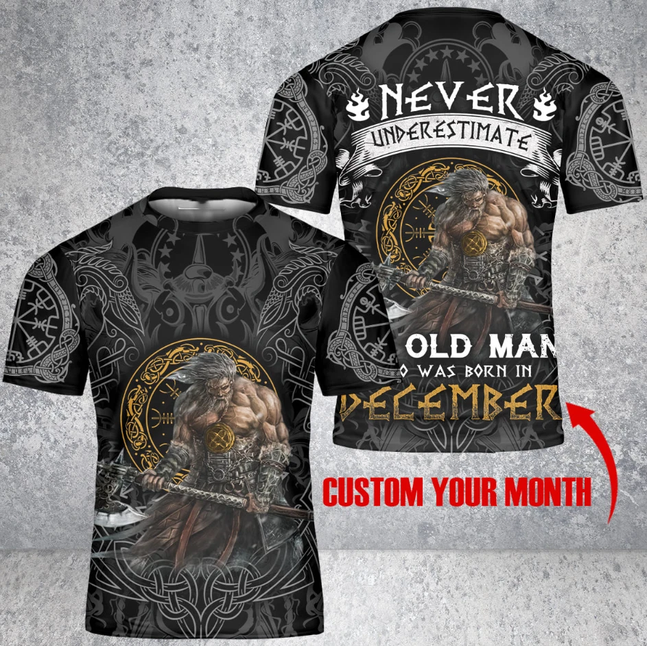 Never Underestimate An Old Man Who Was Born In December Viking Blood 3D T Shirt