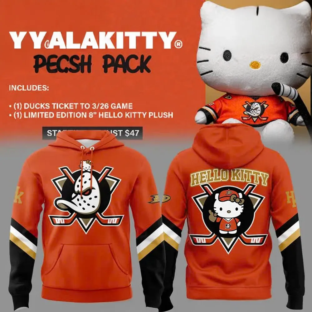 New 2025 Anaheim Ducks x Hello Kitty Plush Pack Special Custom Hoodie