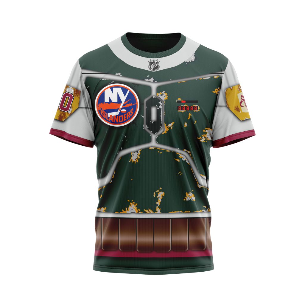 NHL New York Islanders X Boba Fetts Armor Specialized Design For Star Wars Fourth Of July AOP T-Shirt