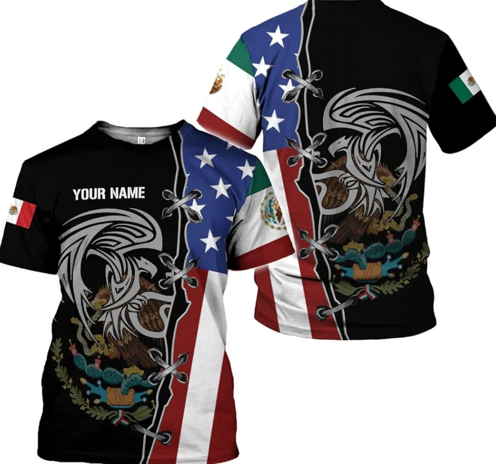 Personalized Name Mexico Mexican Us Flag 3D T Shirt Size S-5Xl