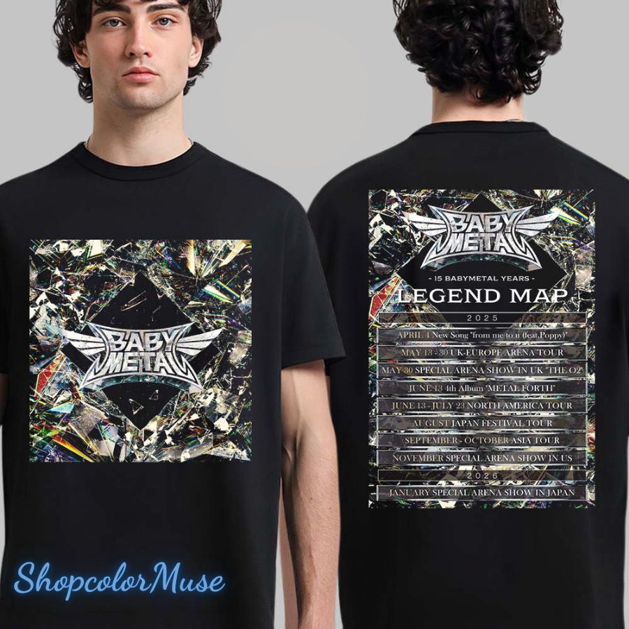 Babymetal 15 Babymetal Years Anniversary Legend Map 2025 Fox Day Two Sides Unisex T-Shirt