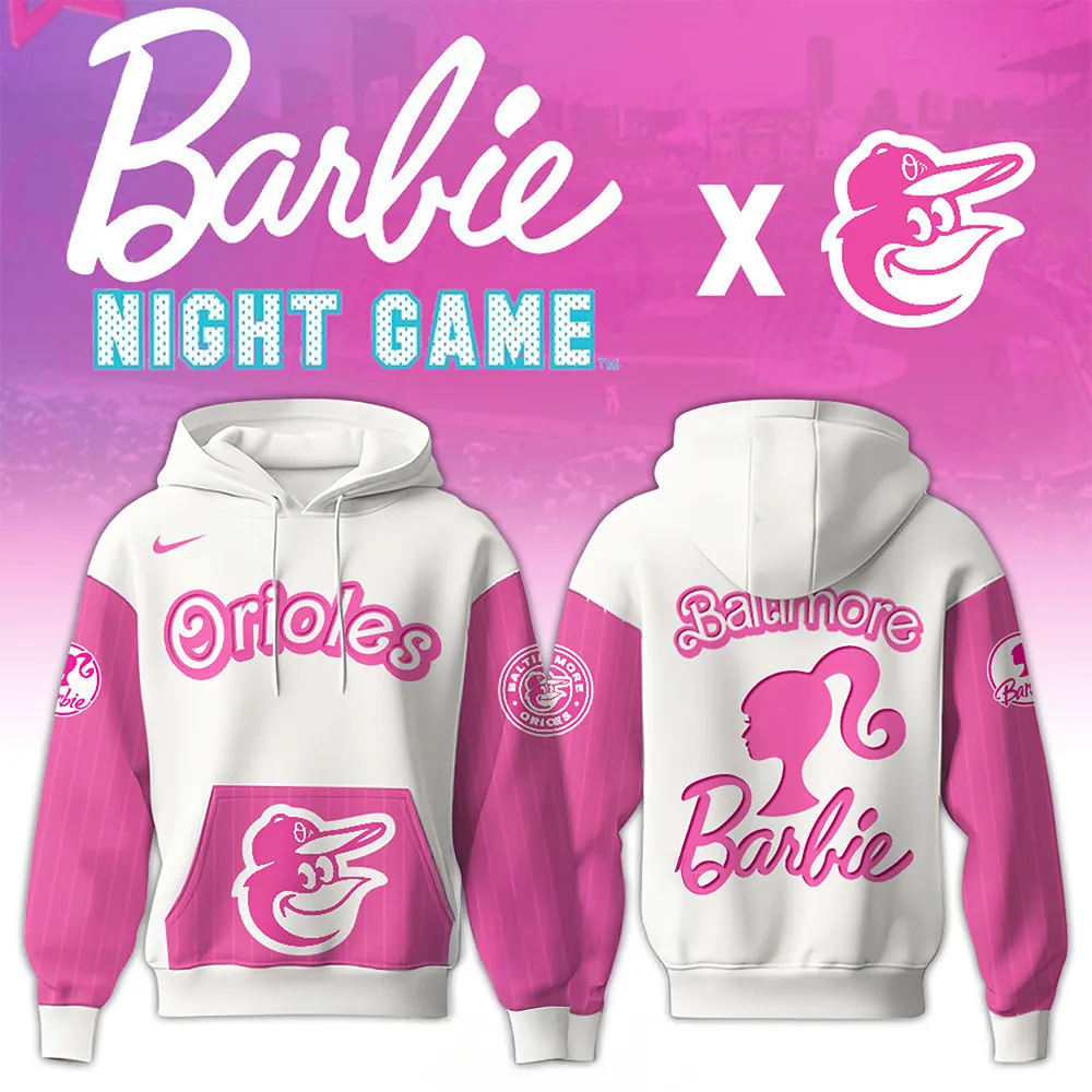 Baltimore Orioles x Barbie Night Game Special Edition Hoodie Presents For Baseball Lovers