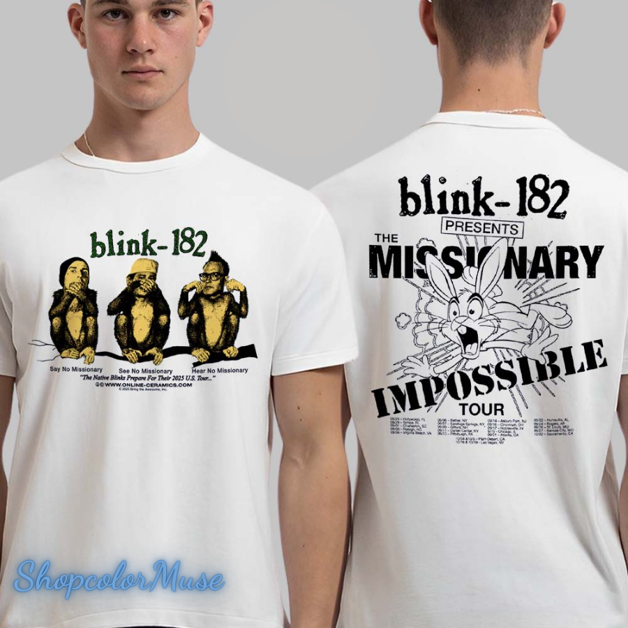 Blink 182 The Missionary Impossible Tour 2025 Say No See No Hear No Monkeys Two Sided T-Shirt