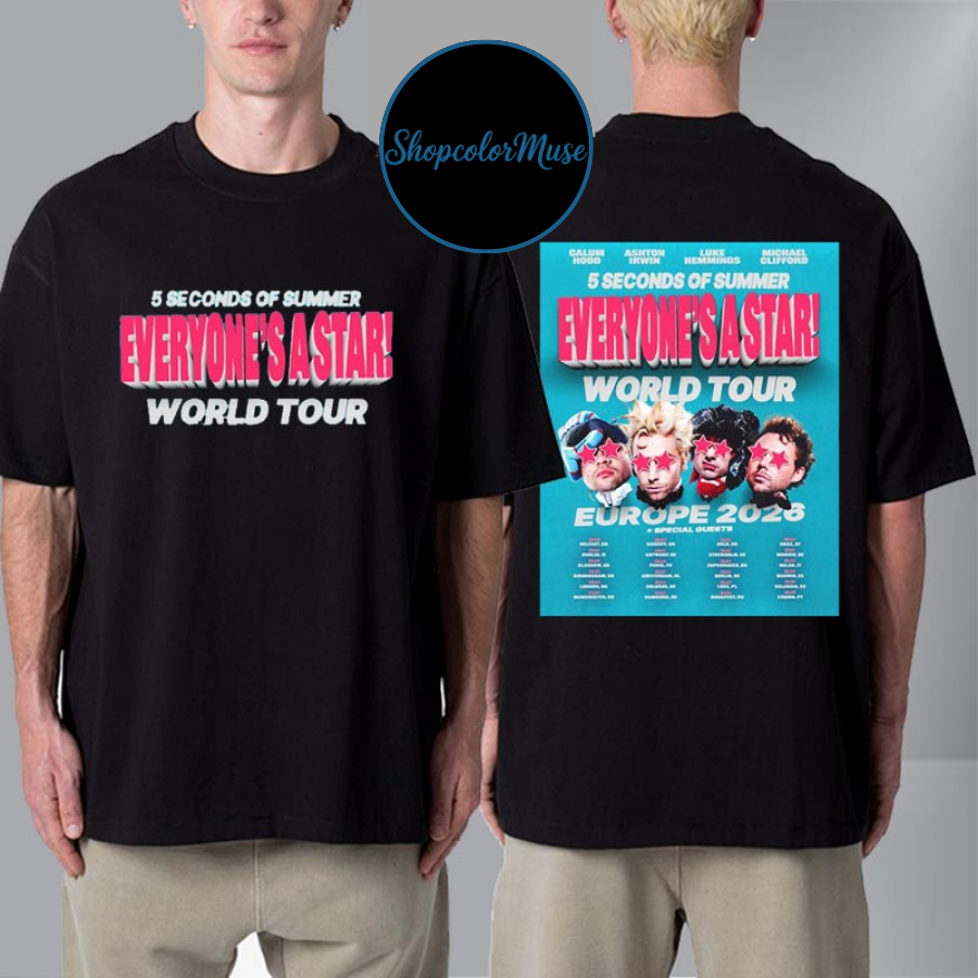 5 Seconds of Summer Everyone’s A Star 2026 World Tour Europe Schedule Cities Tour Dates Unisex T Shirt Two Sided