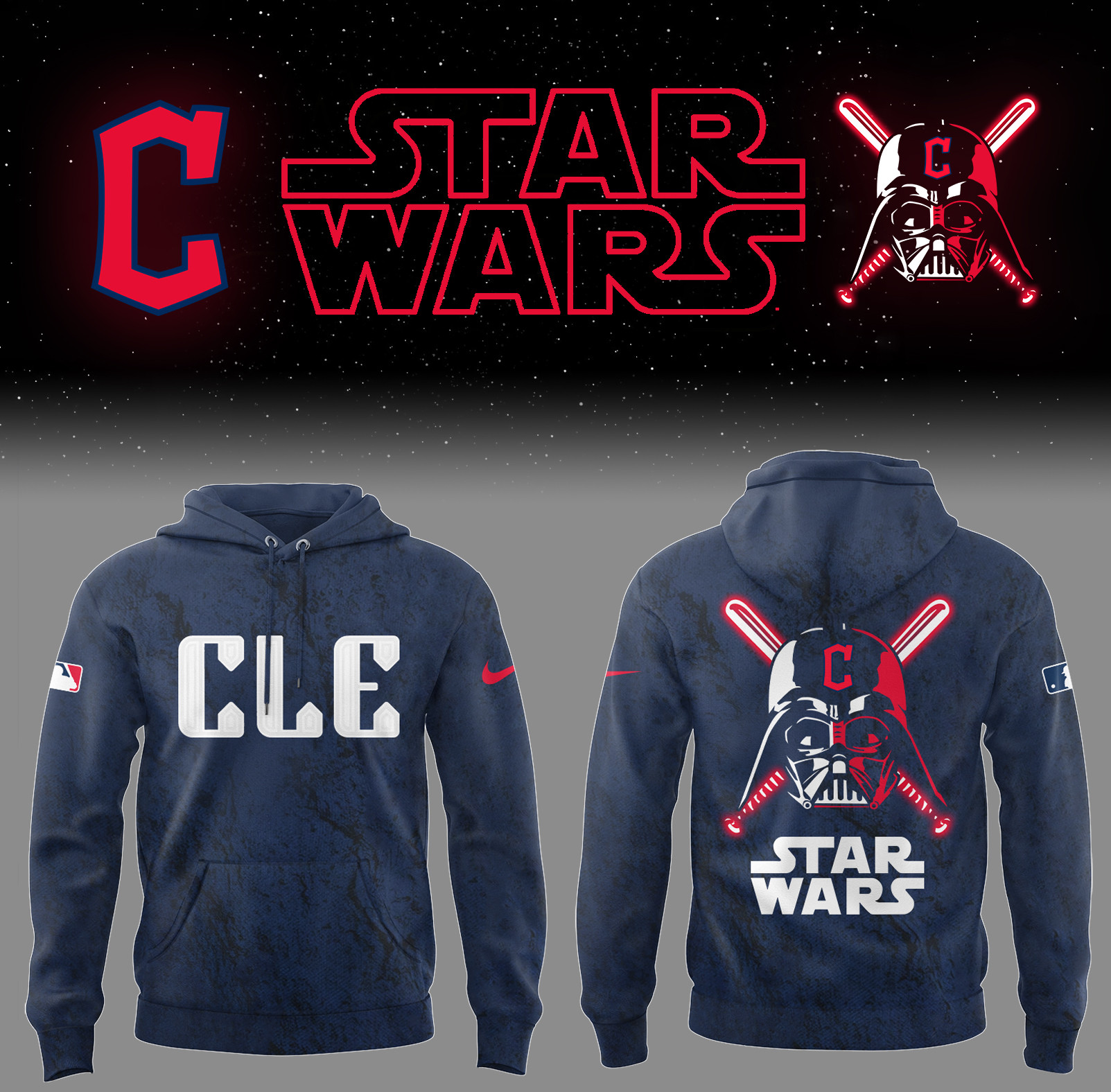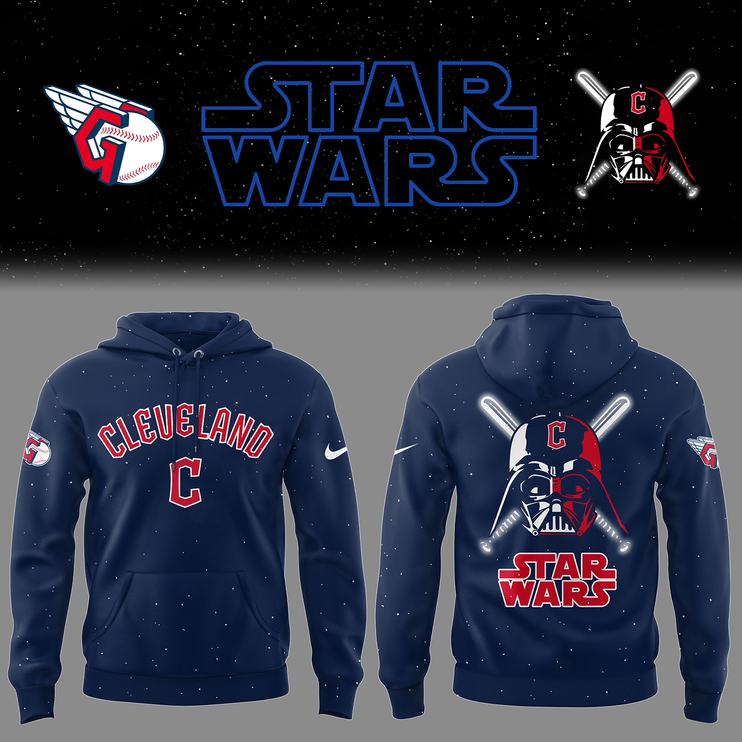 Cleveland Baseball Cleveland x Star Wars 2025 Navy Hoodie Gifts For Baseball Players