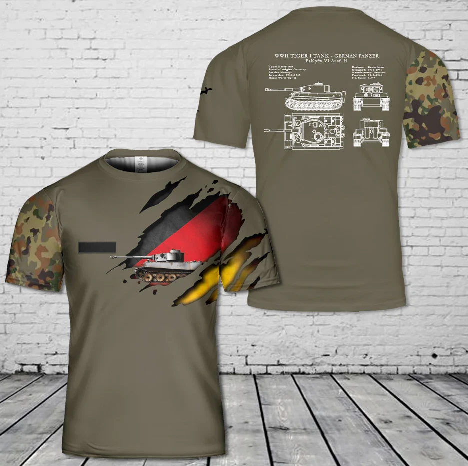 Custom Name 1942 German Panzer Ww2 Tiger I Tank 3D T Shirt Size S-5Xl