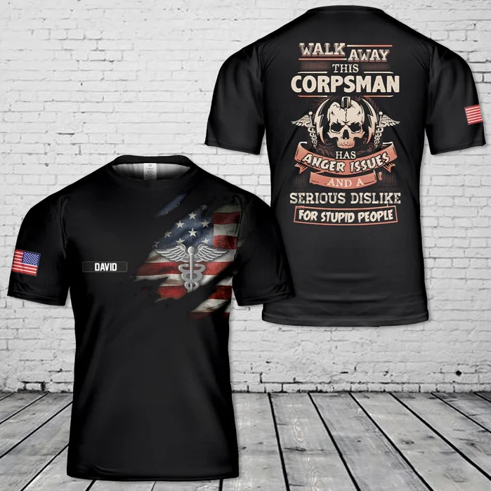 Custom Name Us Navy Hospital Corpsman A Caduceus Aop 3D T-Shirt