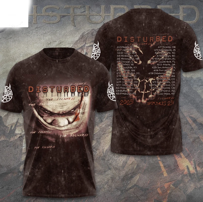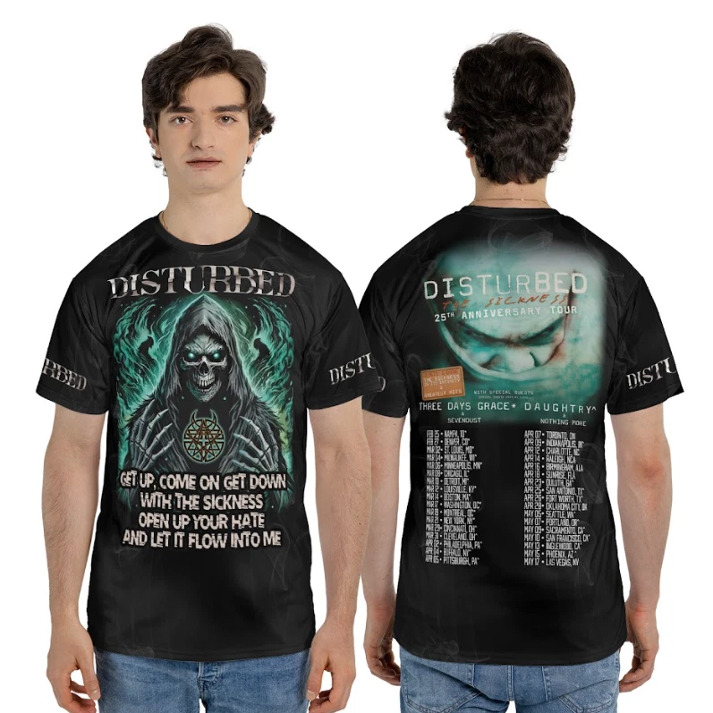 Disturbed The Sickness 25Th Anniversary Tour 2025 Aop 3D T-Shirt