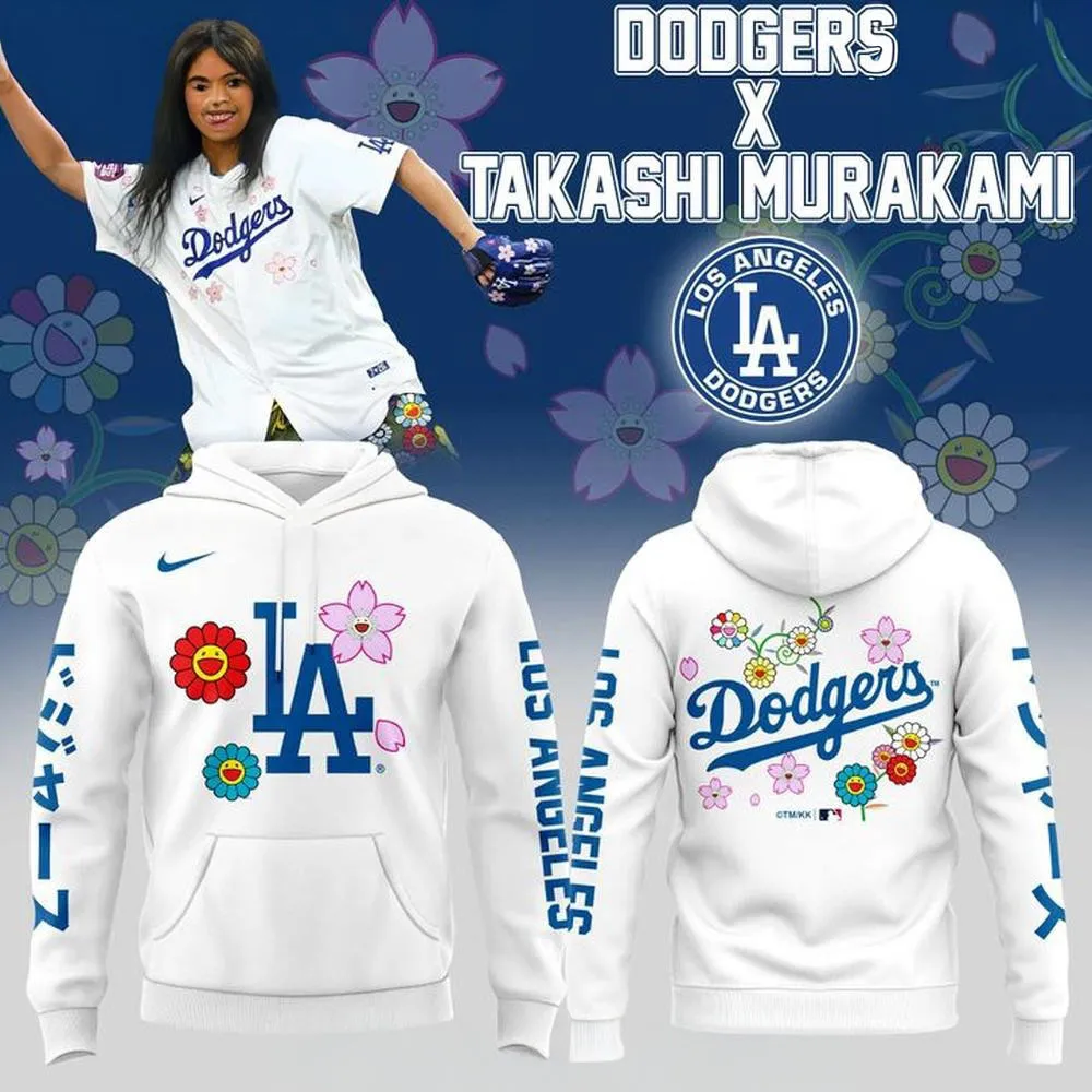 Dodgers x Takashi Murakami 2025 MLB White Hoodie Gift For Sport Music Fans