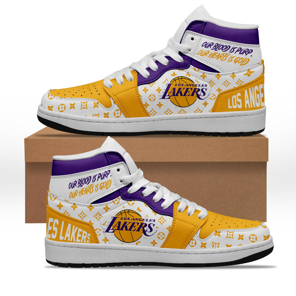 Los Angeles Lakers Personalized Sport High-Top Sneakers Shoes Custom Name Design For Men And Women