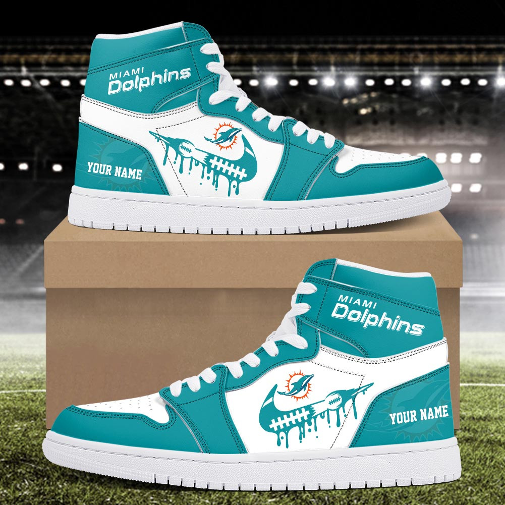 Miami Dolphins AJ1 High Sneakers Shoes For Men And Women