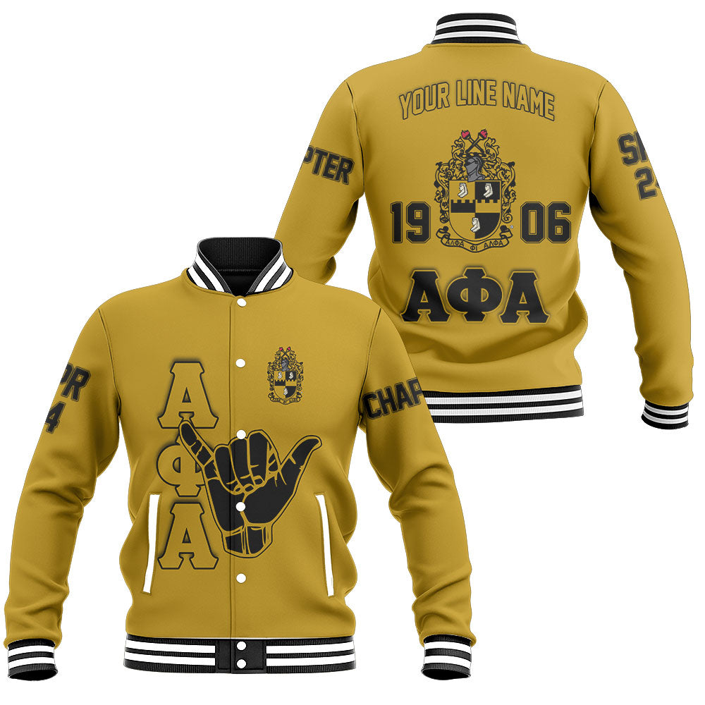 Personalized Alpha Phi Alpha Baseball Jackets Gold Handsign And Founded Year Style
