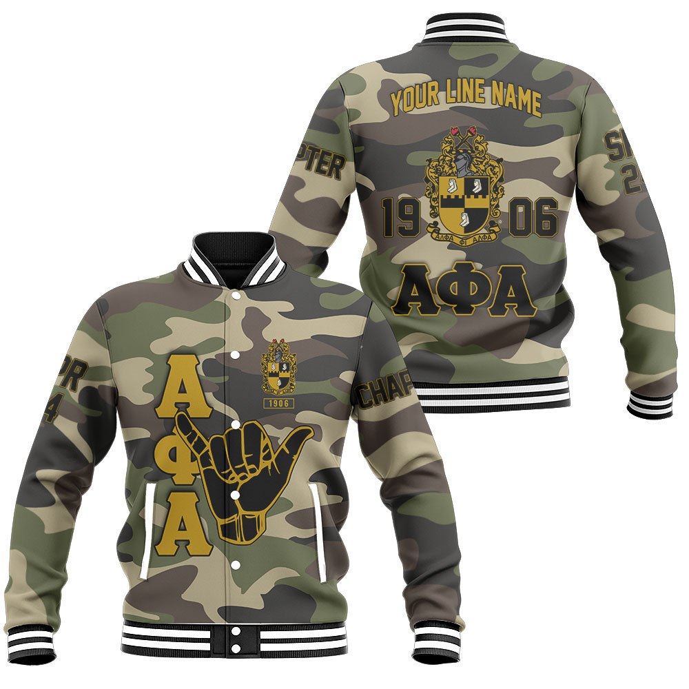 Personalized Alpha Phi Alpha Baseball Jackets Camouflage Handsign And Founded Year Style