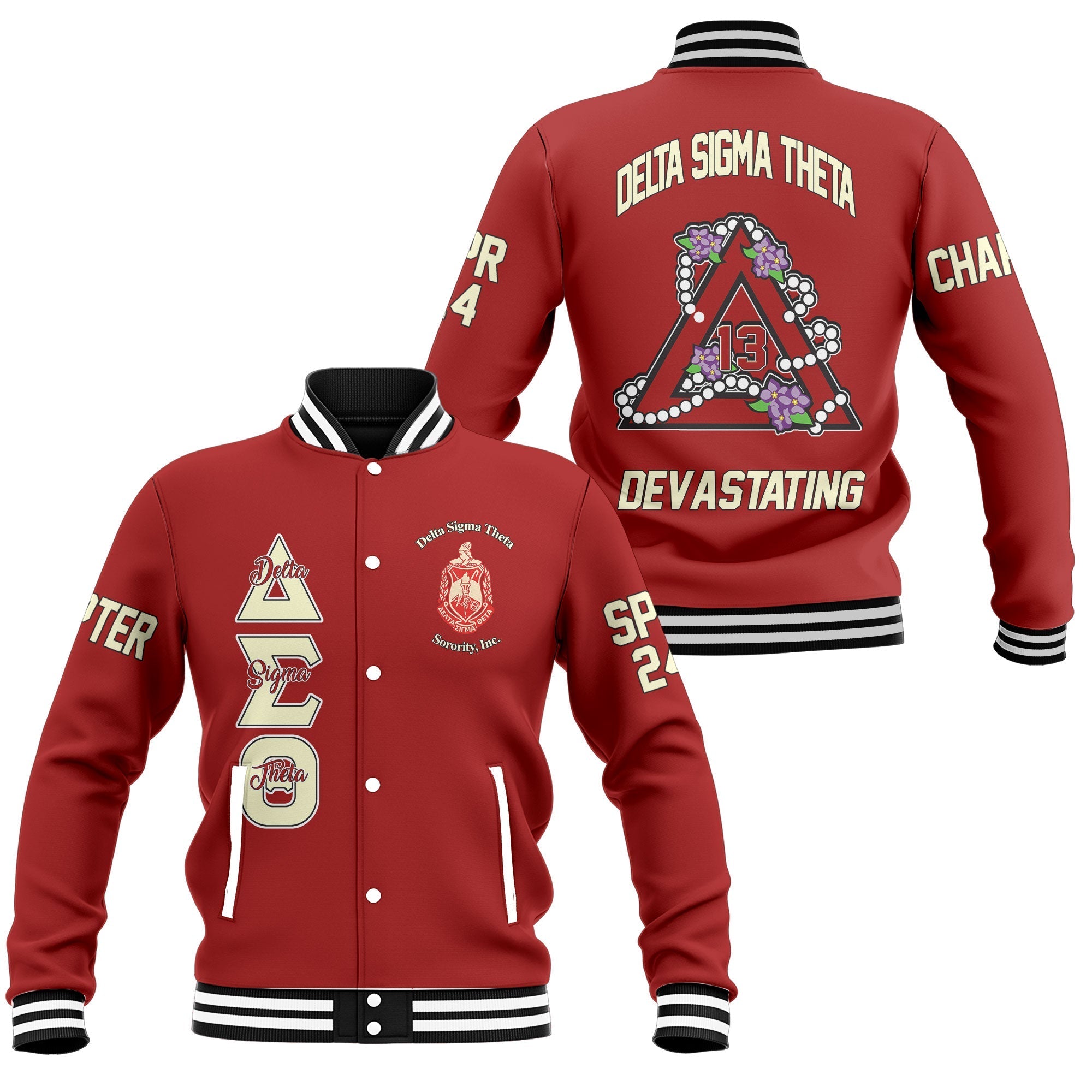Personalized Delta Sigma Theta Baseball Jackets Red Handsign And Founded Year Style
